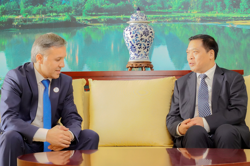 10月18日,广西贸促会会长李常官在南宁会见来邕出席第七届中国—中亚合作论坛的塔吉克斯坦工商会主席朱马洪佐达•詹姆舍德。
