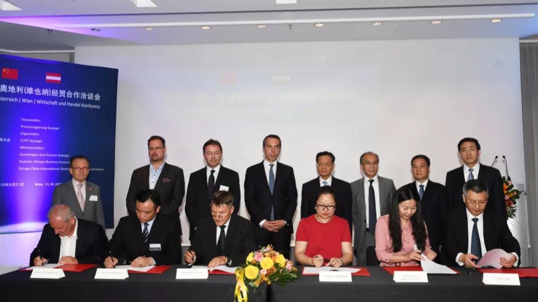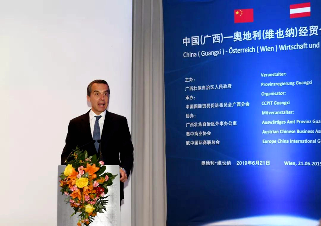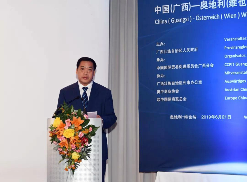 6月21日,由广西壮族自治区人民政府主办、广西贸促会承办的中国(广西)—奥地利(维也纳)经贸合作洽谈会在维也纳举行。自治区主席陈武,奥地利前总理、奥中商业协会咨询委员会主席克里斯蒂安•科恩,我国驻奥地利大使李晓驷等出席并致辞。
