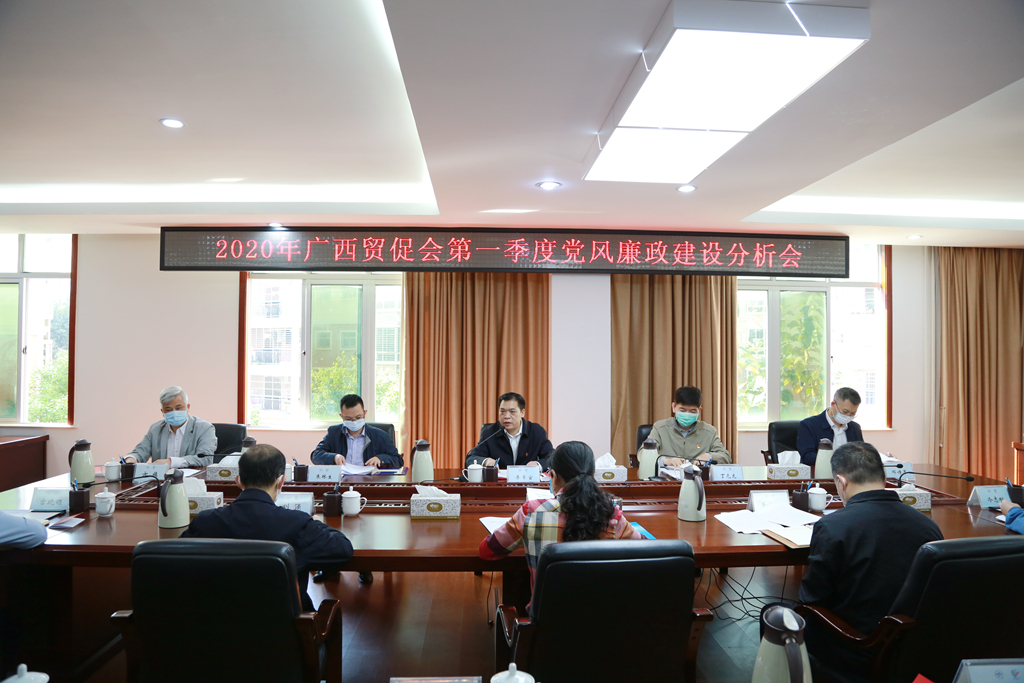 为全面加强党的领导,认真落实全面从严治党主体责任,分析党风廉政建设形势,查找突出性和苗头性问题,防范各类廉政风险,分解全面从严治党工作任务。4月27日,广西贸促会召开2020年党的工作暨党风廉政建设工作会议、一季度党风廉政建设分析会。