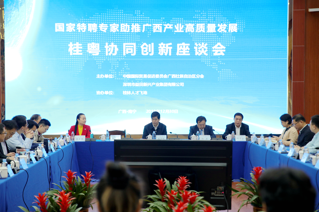 12月30日,由广西贸促会、深圳益田集团共同主办的桂粤协同创新座谈会在广西南宁市成功举办。广西自治区政协副主席钱学明出席座谈会并致辞。国家特聘专家、粤港澳大湾区企业家及自治区直属企事业单位、国家级经济技术开发区、重点产业园区代表、广西“三大三新”领域企业负责人逾70人参加。
