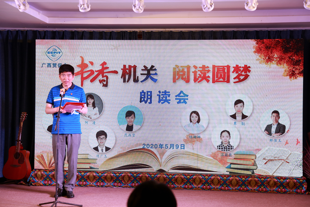 为贯彻习近平总书记关于贸促工作重要论述精神,推动习近平经济思想在干部群众中不断走深走实走心,营造浓厚阅读氛围,推动机关社会主义精神文明建设,5月9日晚,广西贸促会在会机关5楼城市书房举行了一场别开生面的“书香机关 阅读圆梦”朗读会。会党组书记、会长李常官等全体会班子成员,自治区直属机关工委副书记倪萍、区直工委宣传部部长邵国芳莅临现场指导。8位由机关各部室推选的宣讲人,结合各自在阅读实践中的理解和体会开展理论宣讲。