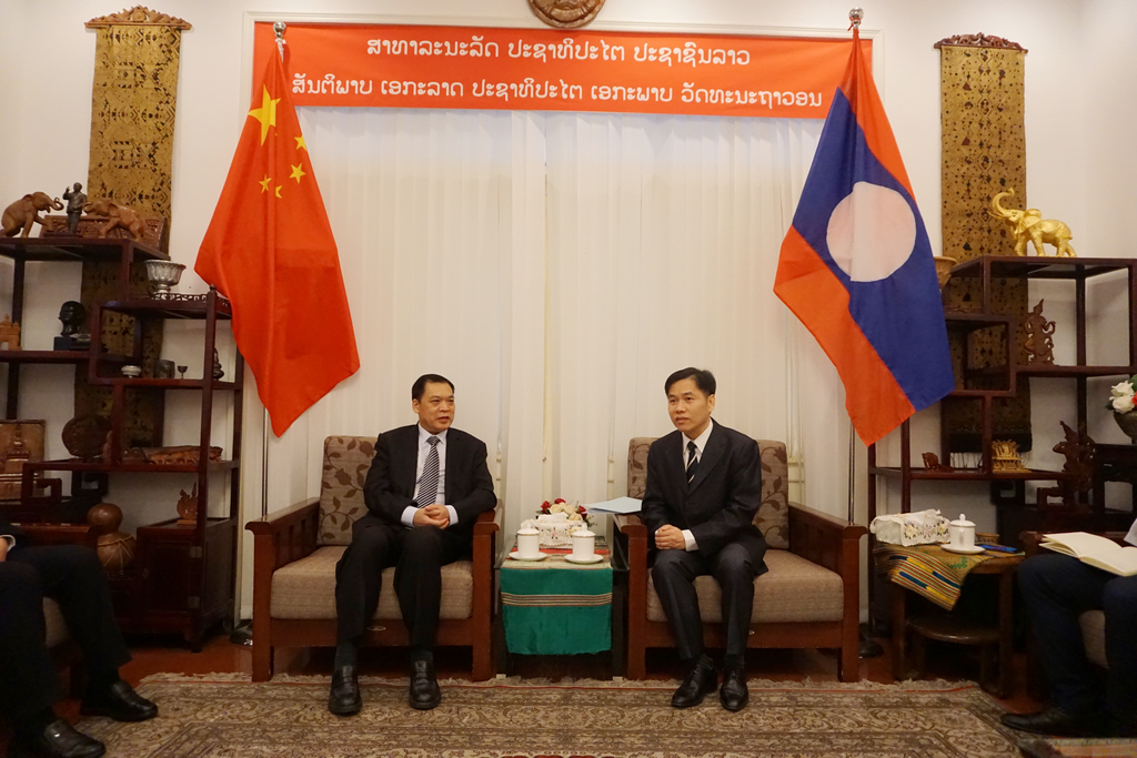 老挝驻华大使馆商务参赞波沙万,丁元龙副会长,国际会议部有关人员参加会谈。