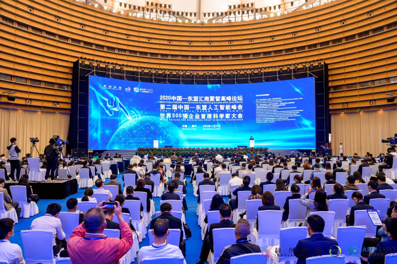 由自治区人民政府、中国科学技术协会共同主办,自治区人力资源社会保障厅、自治区大数据局、自治区科协、自治区投促局和广西贸促会共同承办的2020中国—东盟汇商聚智高峰论坛、第二届中国—东盟人工智能峰会、世界500强首席科学家大会于2020年11月13日至15日在南宁成功举办。