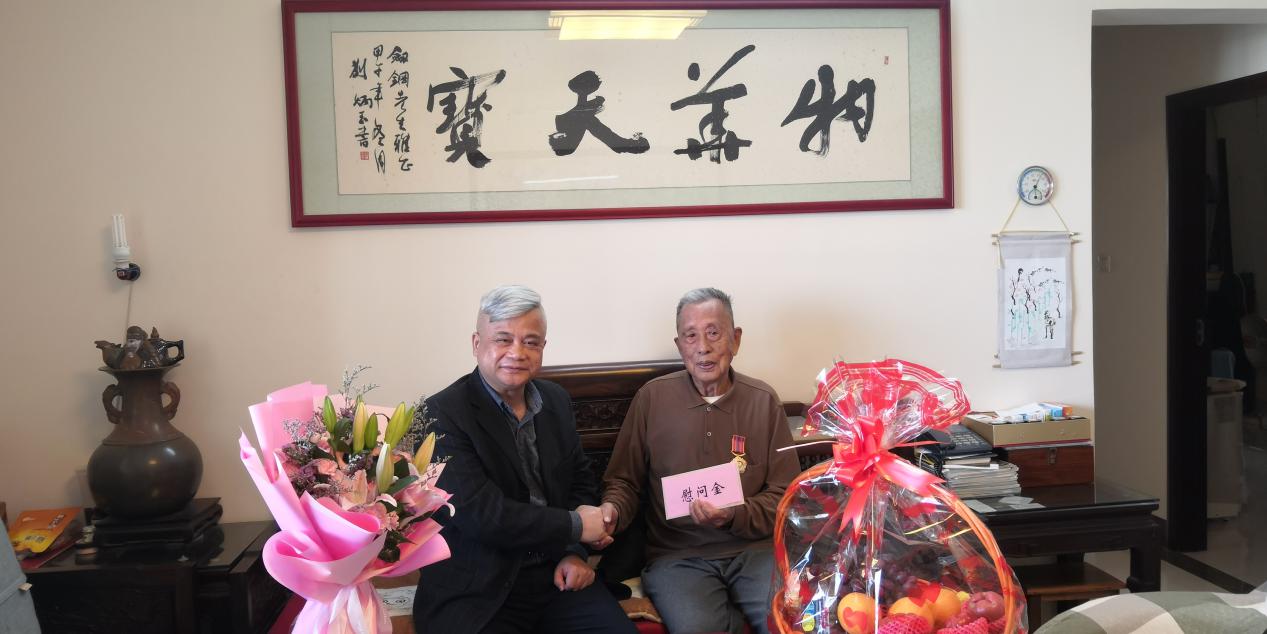 近日,为纪念中国人民志愿军抗美援朝出国作战70周年,广西贸促会方旗二级巡视员到曾参加抗美援朝的离休老干部霍玺同志家中进行慰问活动。