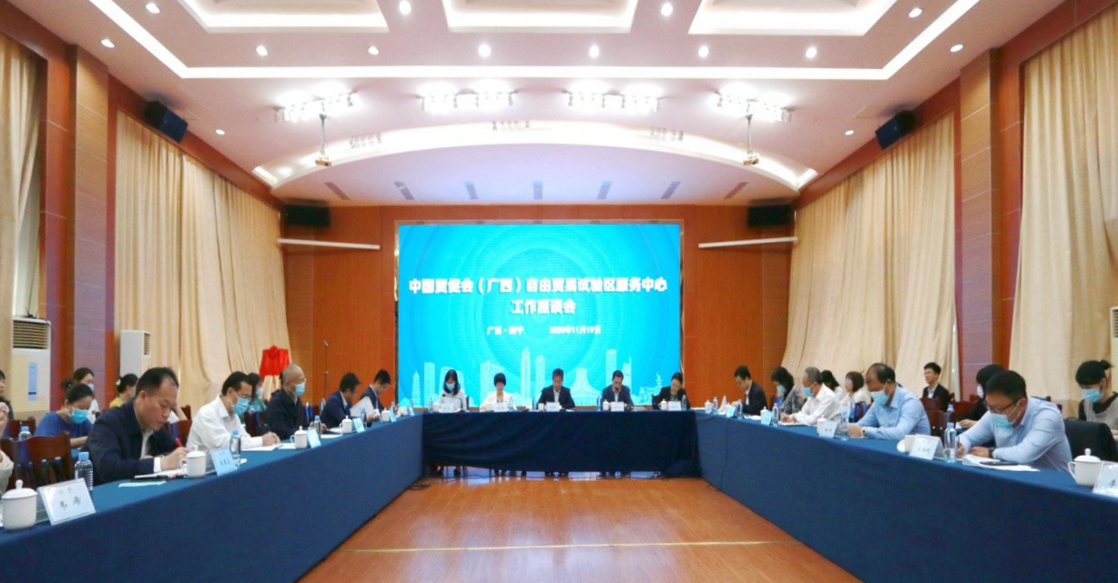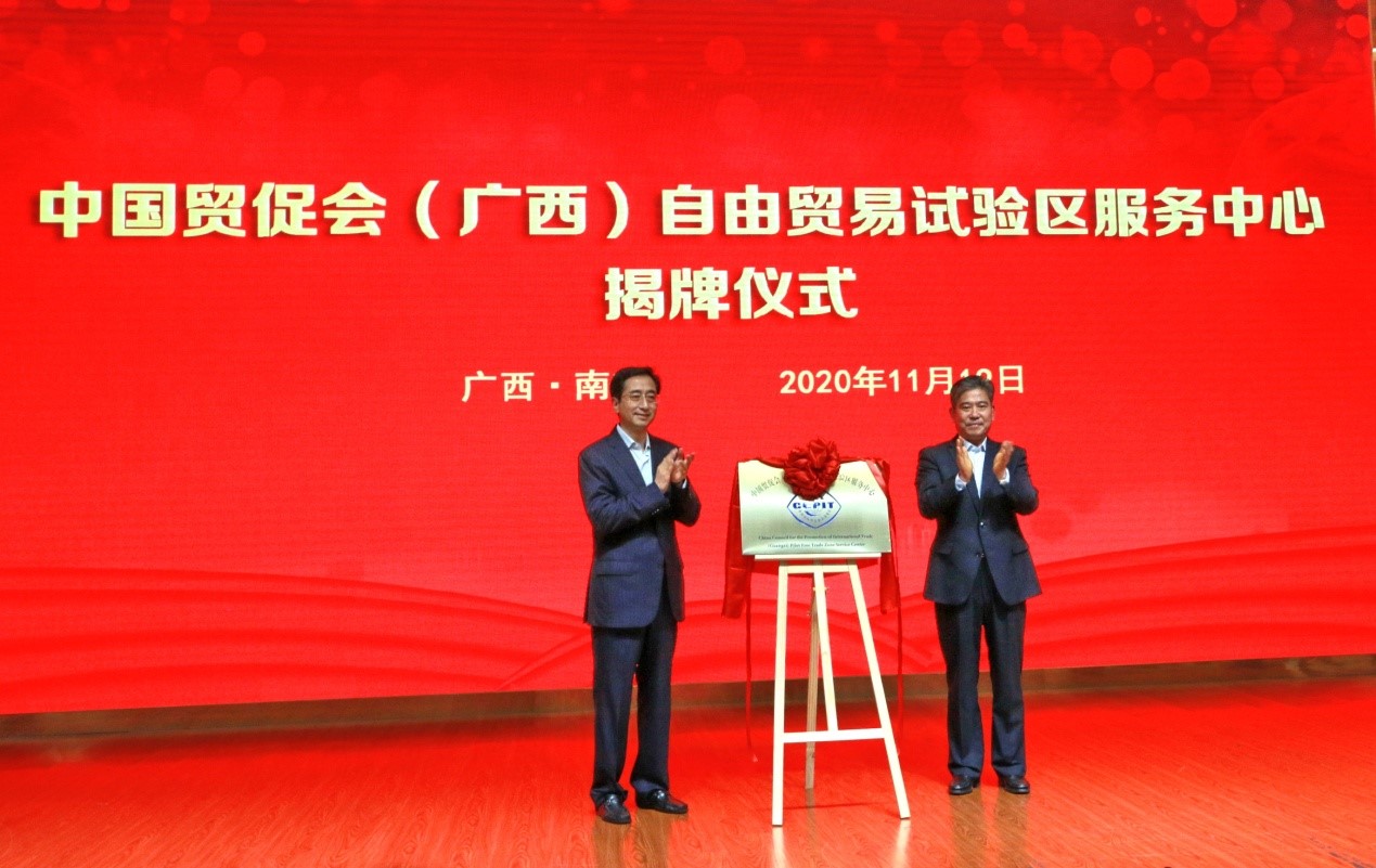 11月19日,中国贸促会(广西)自由贸易试验区服务中心揭牌仪式暨座谈会在南宁举行。这是按照新的《中国贸促会地方自由贸易试验区服务中心管理办法(试行)》,在全国范围内由中国贸促会、地方贸促会联合设立的第一个自贸试验区服务中心。