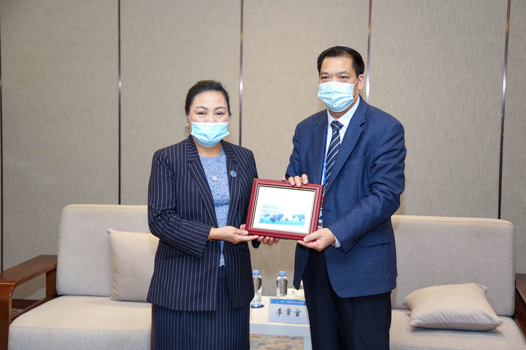 11月26日下午,中国—东盟商务与投资峰会秘书处秘书长、广西贸促会会长李常官在南宁与老挝驻华大使坎葆•恩塔万进行工作座谈,就共同筹备好第17届中国—东盟商务与投资峰会及其框架下举办的老挝国家领导人与中国企业CEO圆桌对话会进行了沟通。