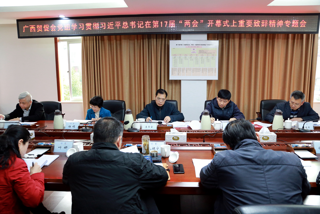 12月2日,广西贸促会党组召开专题会学习贯彻习近平总书记在第17届中国—东盟博览会和中国—东盟商务与投资峰会开幕式上重要致辞精神,研究贯彻落实措施。广西贸促会党组书记、会长李常官主持会议并讲话。