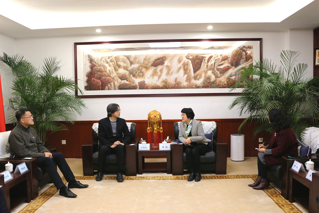 12月8日,伍娟副会长会见香港特别行政区政府驻广西联络处吴嘉俊主任一行,双方就合作举办香港投资推广活动进行了深入交流。