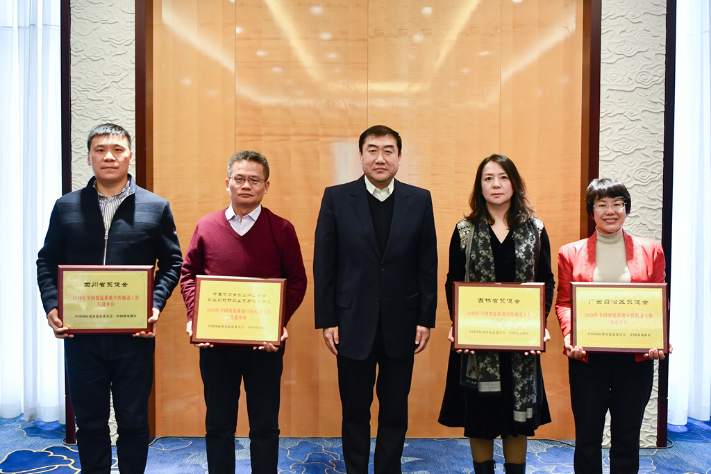 会议表彰了2020年全国贸促系统宣传报道工作先进单位,张少刚副会长向我会和其他获奖单位颁发奖牌。与会代表还就加强地方贸促会、行业分会宣传工作,利用报社平台和资源更好地与地方贸促会、行业分会合作进行了深入交流和探讨。会议还组织开展了全国贸促系统特约记者培训会。