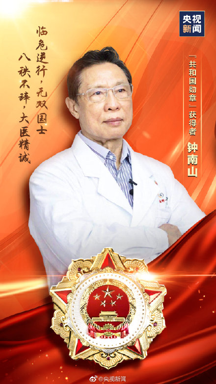 钟南山,男,汉族,中共党员,1936年10月生,福建厦门人,广州医科大学附属第一医院国家呼吸系统疾病临床医学研究中心主任,中国工程院院士,第十一、十二届全国人大代表,第八、九、十届全国政协委员。他长期致力于重大呼吸道传染病及慢性呼吸系统疾病的研究、预防与治疗,成果丰硕,实绩突出。新冠肺炎疫情发生后,他敢医敢言,提出存在“人传人”现象,强调严格防控,领导撰写新冠肺炎诊疗方案,在疫情防控、重症救治、科研攻关等方面作出杰出贡献。荣获国家科学技术进步奖一等奖和“全国先进工作者”“改革先锋”等称号。
