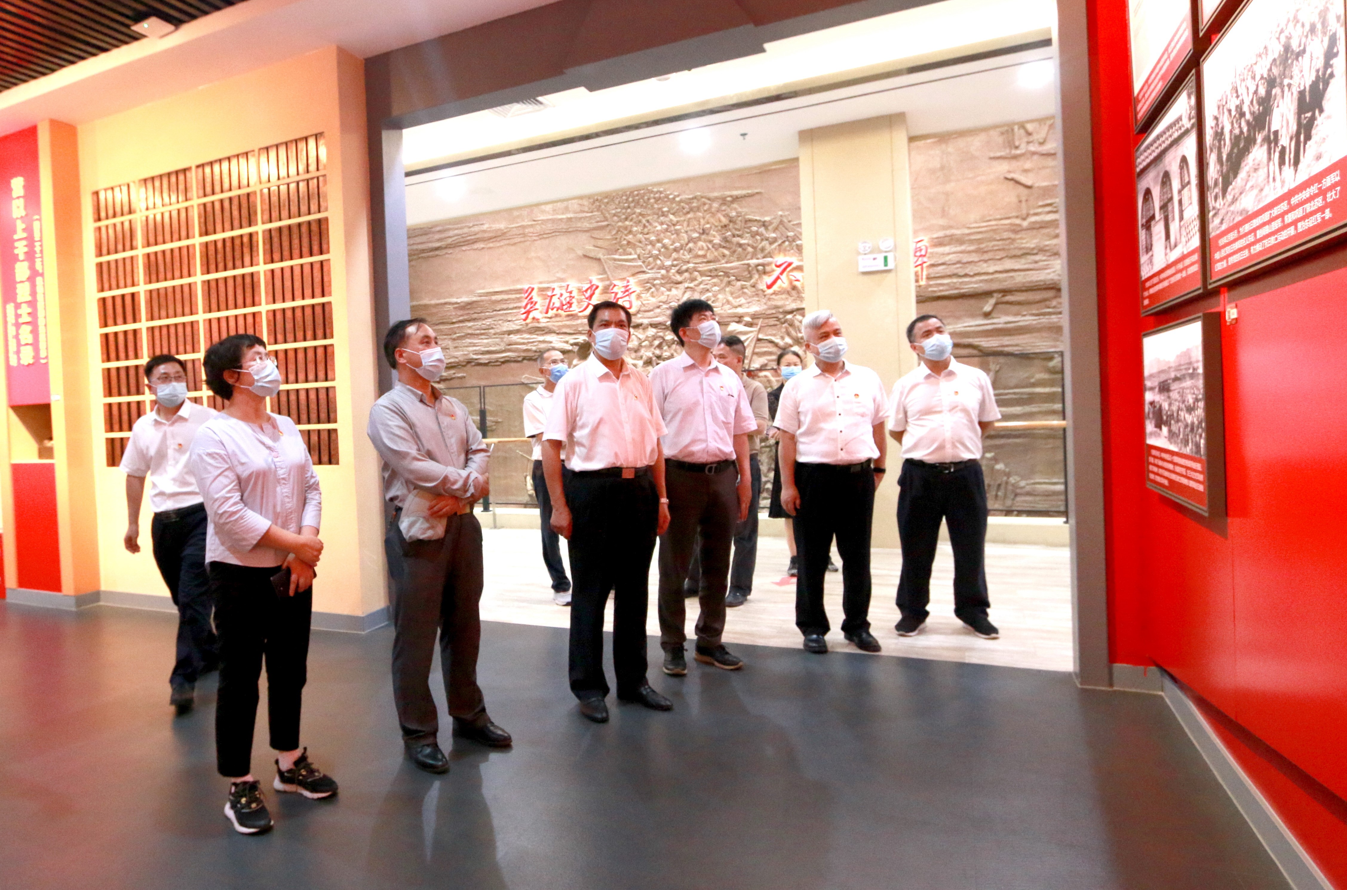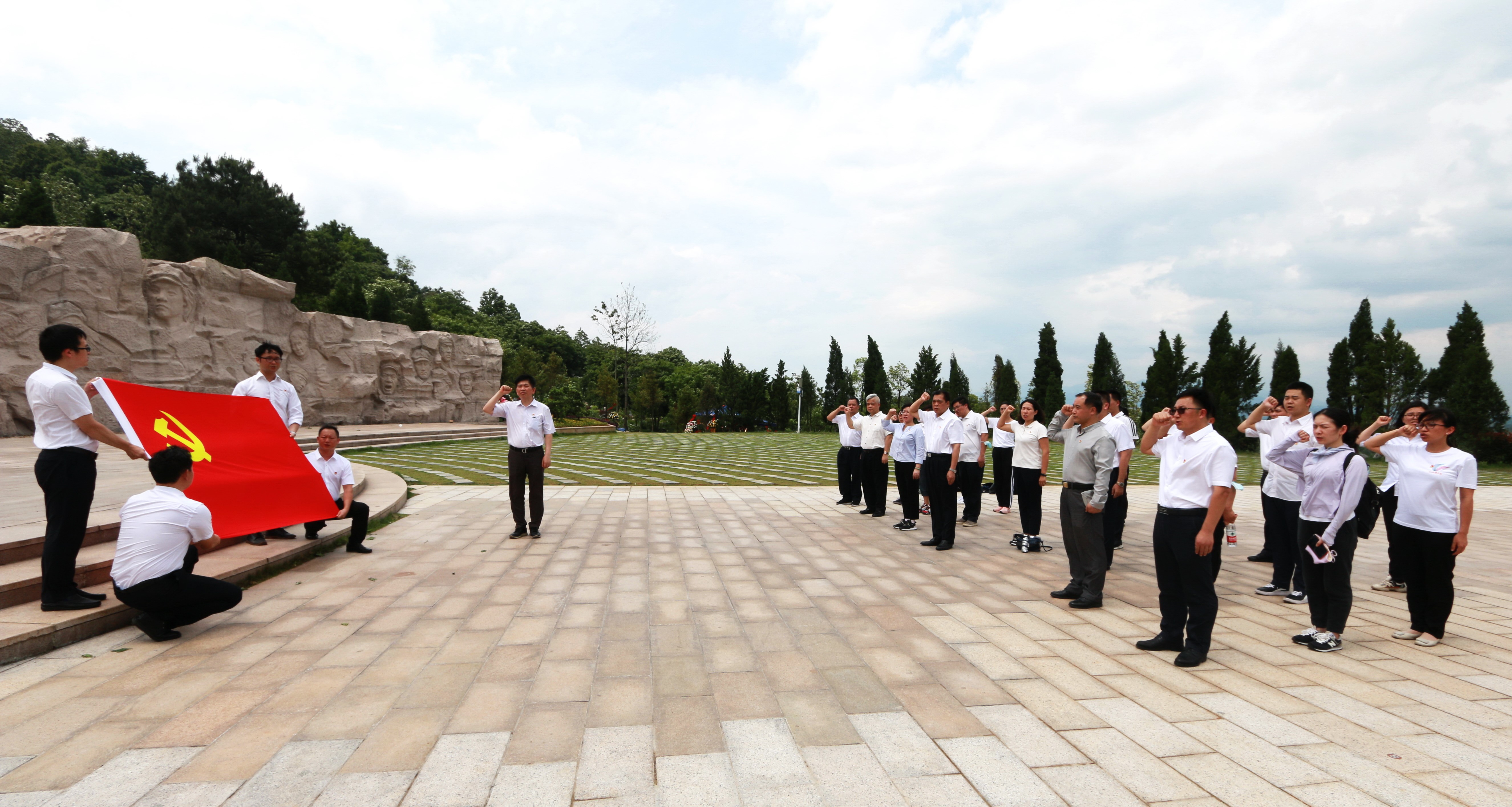 5月14日,全体党员怀着对革命烈士的无限崇敬之情参观了红军长征湘江战役纪念园。在凭吊广场,全体干部列队肃立,向在湘江战役中英勇牺牲的红军烈士默哀,敬献花篮并三鞠躬,表达对革命烈士的深切缅怀之情和崇高敬意。“我志愿加入中国共产党……随时准备为党和人民牺牲一切,永不叛党。”全体党员高举右手,面对党旗,重温入党誓词,表达牢记初心使命,为党的事业奋斗终身的坚定决心。随后,全体干部瞻仰浮雕《红军魂》,参观湘江战役纪念馆。一草一木一忠魂、一山一石一丰碑。红军长征路线图,脚山铺阻击战模拟场景……一幅幅历史照片、一件件革命文物,生动展现湘江战役的历史过程和壮烈场景,震撼每一位干部的心灵。
