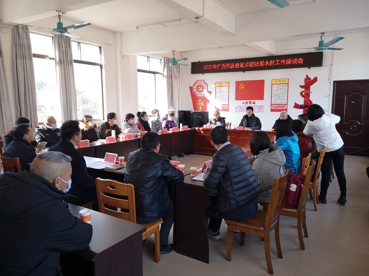 丁元龙副会长一行在南木村召开2021年广西贸促会定点帮扶南木村工作座谈会。座谈会上,南木村第一书记张运超汇报了南木村2020年脱贫攻坚成果;贺街镇镇长罗和阵汇报南木村冷库项目实施进展情况;八步区委常委、常务副区长雷天介绍八步区脱贫攻坚工作情况及体会。丁元龙副会长对我会作为后盾单位,在巩固脱贫帮扶成果,推进乡村振兴方面所做的工作作了交流发言。