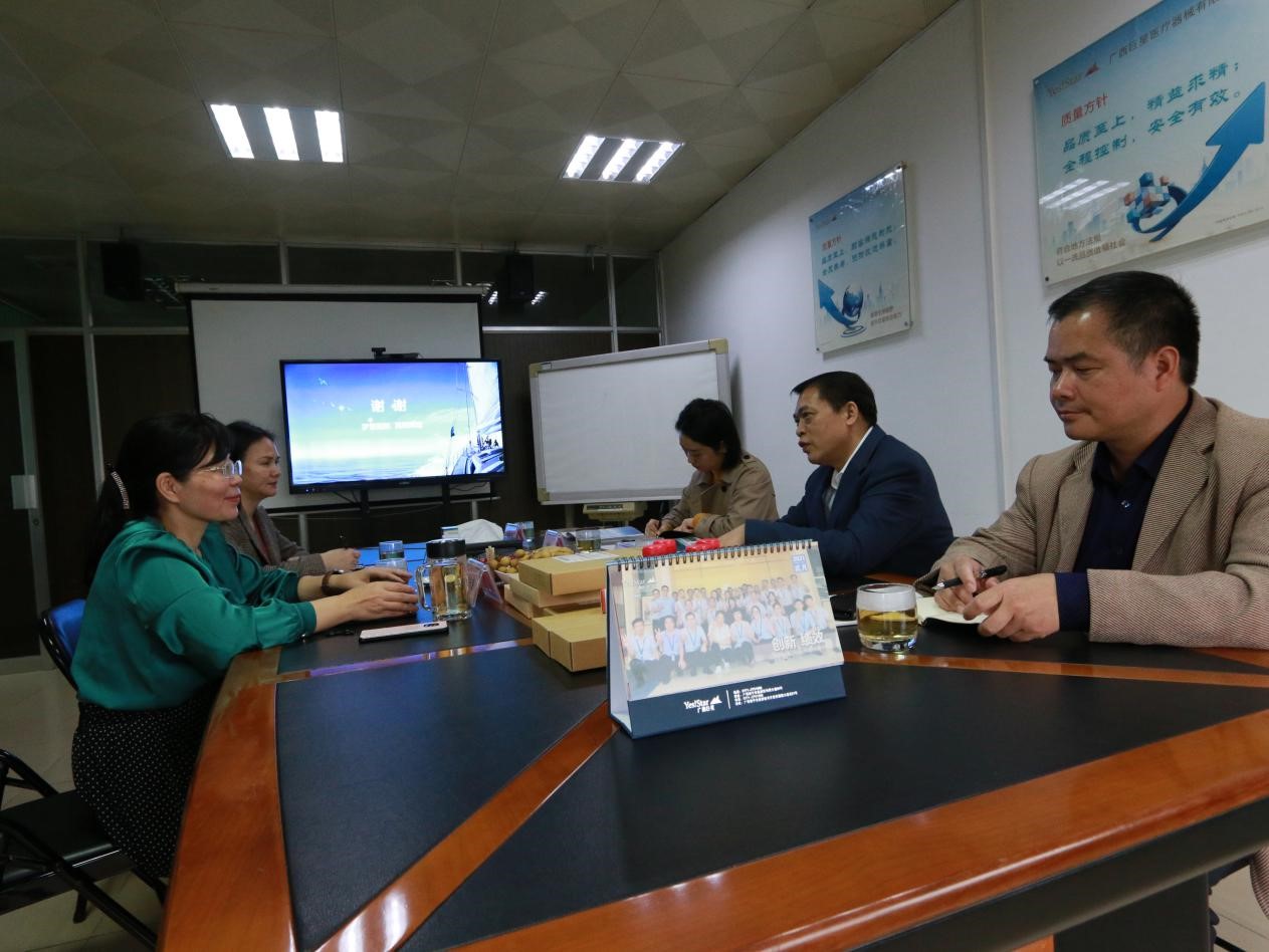在调研座谈会上,广西巨星医疗器械有限公司总经理廖长香对广西贸促会一直以来的关心与指导表示衷心感谢,就医疗产品、企业文化、精细管理等方面的工作进行了汇报,作为第一届中国—东盟博览会、中国—东盟商务与投资峰会期间从东盟国家引进到南宁投资的外资企业,广西巨星秉承“诚信、感恩、创新、绩效”的价值理念,发展势头良好。
