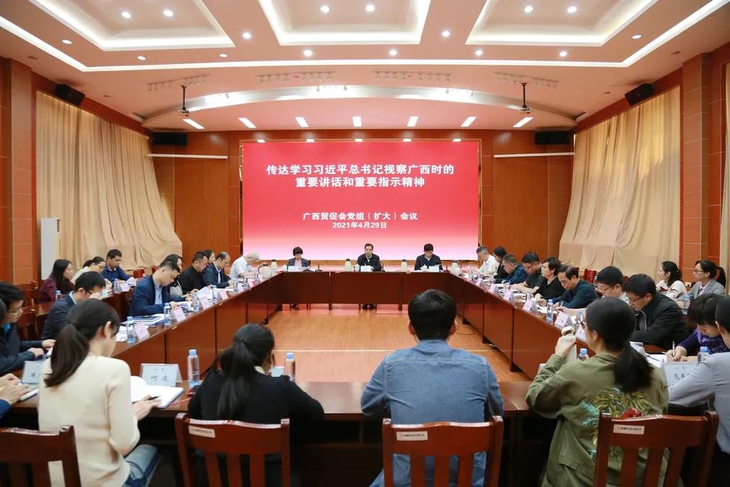 4月29日,广西贸促会党组召开扩大会议,传达学习习近平总书记视察广西时的重要讲话和重要指示精神,传达学习自治区党委常委会精神、全区领导干部会议精神,并对贯彻落实习近平总书记重要讲话和重要指示精神进行研究部署。