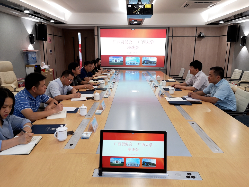 范祚军副校长介绍了广西创新发展研究院作为智库机构的主要职能及研究领域,表示广西大学作为其主管单位,欢迎双方建立合作关系。李光辉院长从国家西部战略、中国—东盟工商界合作机制、智库战略等方面提出研究课题的建议。双方还对合作切入点、资源整合等内容进行探讨。