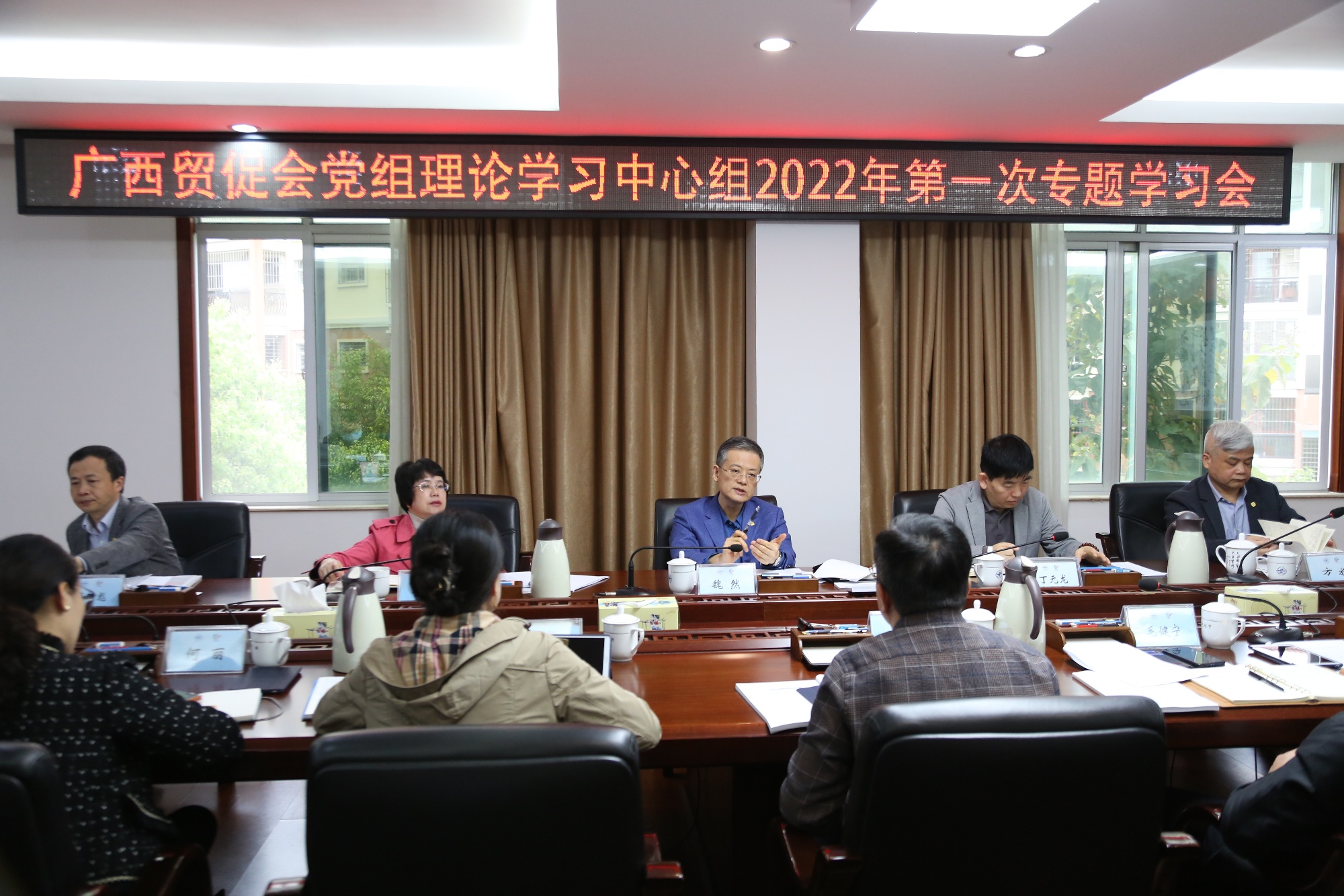 近日,广西贸促会召开党组理论学习中心组2022年第一次专题学习会,本次学习会围绕深入学习贯彻习近平新时代中国特色社会主义思想,传达学习党的十九届六中全会精神、习近平总书记在省部级主要领导干部专题研讨班、中央政治局第三十六次、三十七次集体学习、中央党校(国家行政学院)中青年干部培训班开班式上的重要讲话精神,学习习近平总书记在全国两会期间的重要讲话精神和全国两会精神等内容,深刻领会“两个确立”的决定性意义,增强“四个意识”,坚定“四个自信”,做到“两个维护”,贯彻落实自治区第十二次党代会“1+1+4+3+N”目标任务体系,凝心聚力建设新时代中国特色社会主义壮美广西,以实际行动和优异成绩迎接党的二十大胜利召开。广西贸促会党组书记、会长魏然主持并讲话。丁元龙、伍娟、方旗、邓梦彪等围绕贯彻落实党的十九届六中全会精神和习近平总书记系列重要讲话精神,以及全国两会精神等,结合工作实际作交流发言。