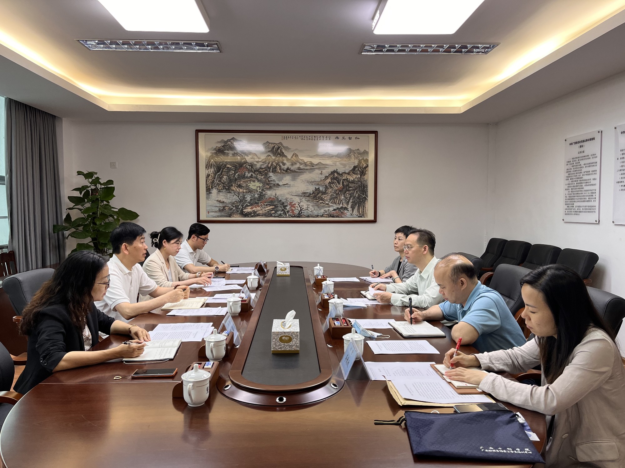 5月23日,丁元龙副会长与自治区北部湾办副主任覃元臻一行就第十二届泛北部湾经济合作论坛暨2022北部湾国际门户港合作峰会筹备工作进行座谈交流。