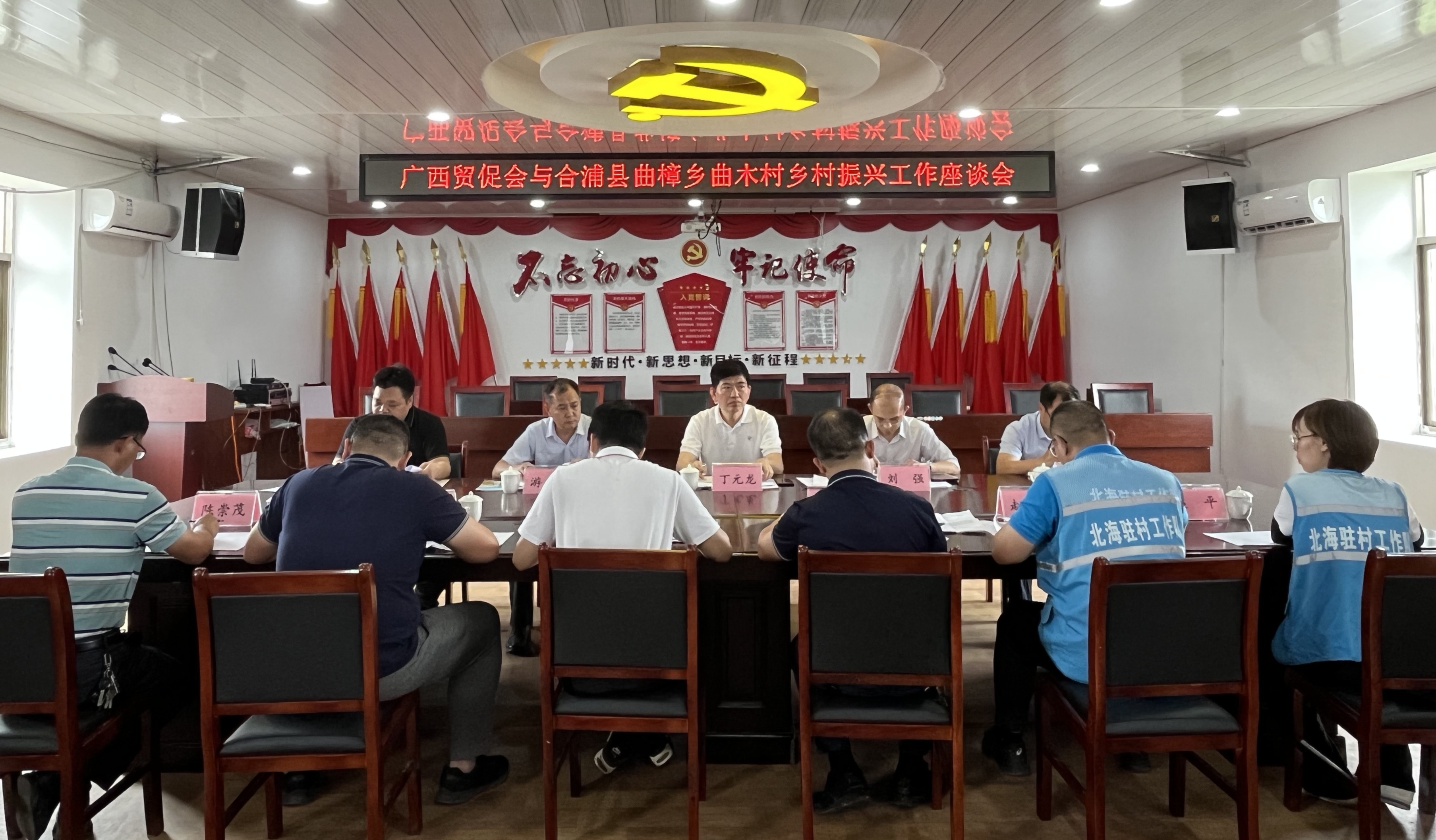 丁元龙副会长一行与合浦县、曲樟乡、曲木村各级领导干部在曲木村村委党群活动室召开乡村振兴工作座谈会。座谈会上,合浦县县委常委、副县长、广西驻村工作队合浦县工作队队长游勇、曲樟乡党委书记李建龙、驻村第一书记分别就合浦县、曲樟乡、曲木村的基本情况、产业发展情况、乡村振兴工作进展情况进行了详细介绍。