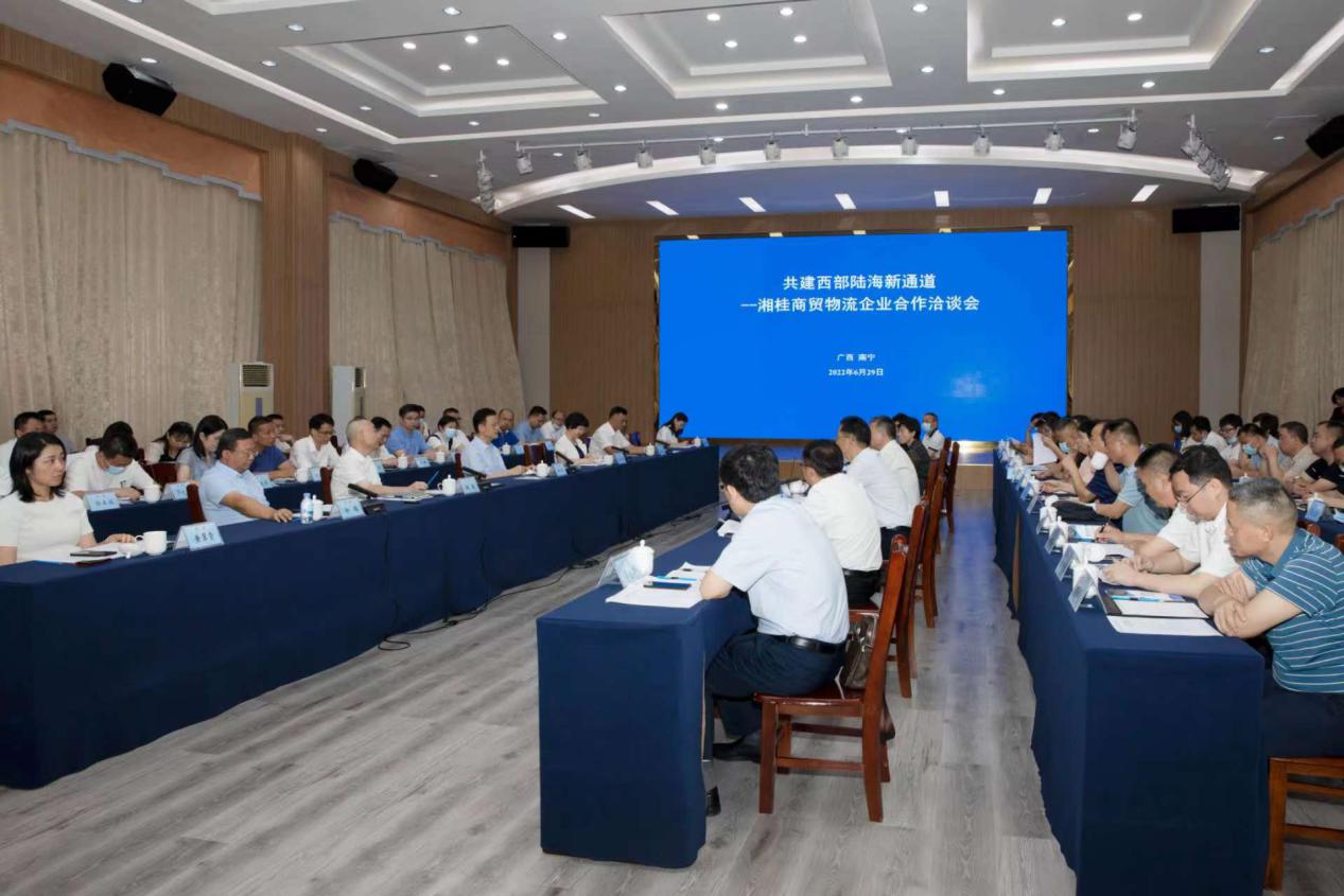 为进一步发挥贸促系统合力,深化湘桂省际商贸物流合作,务实推进西部陆海新通道建设,经广西贸促会和湖南省贸促会精心组织,由湖南省贸促会以及永州、怀化、株洲、益阳等四市贸促系统、政府部门、商贸物流企业组成的湖南商贸物流代表团一行40多人,于6月29日至7月1日赴广西南宁、钦州、防城港市考察调研。