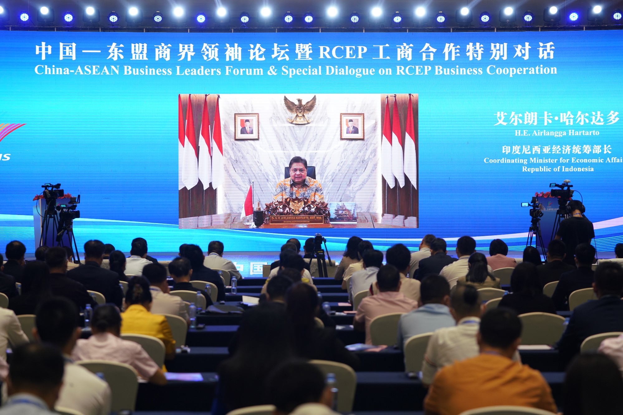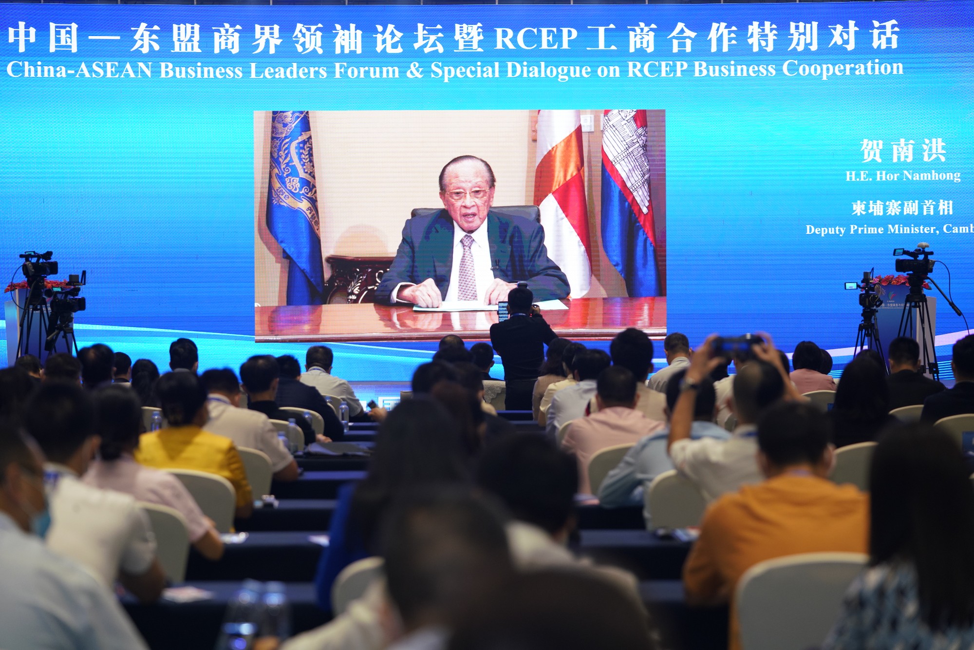 9月17日上午,柬埔寨副首相贺南洪、印度尼西亚经济统筹部长艾尔朗卡·哈尔达多以视频方式出席第19届中国—东盟商务与投资峰会框架下的中国—东盟商界领袖论坛暨RCEP工商合作特别对话,对论坛给予高度评价。