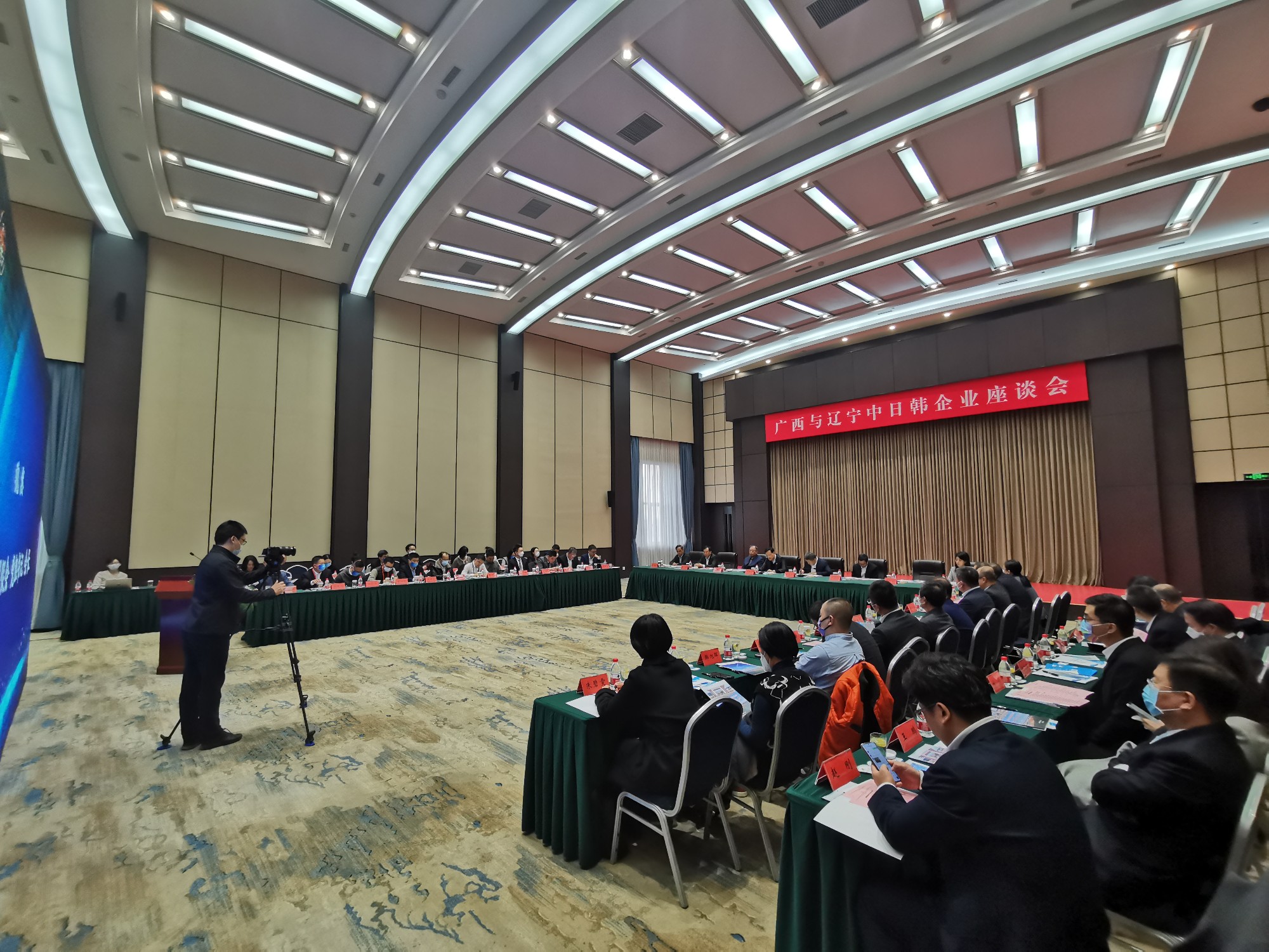 2022年11月19日上午,作为广西参加2022辽宁国际贸易投资洽谈会(简称“辽洽会”)的重点活动,广西与辽宁中日韩企业座谈会在沈阳成功举办。本次座谈会以“共享RCEP机遇,寻求合作发展”为主题,由广西贸促会、辽宁贸促会共同主办,广西贸促会会长魏然、辽宁贸促会会长庞宝国出席并致辞,来自广西、辽宁和日本、韩国的商协会、企业代表在会上开展了精彩推介,进行了踊跃对接、积极会谈,座谈会取得了积极成效。