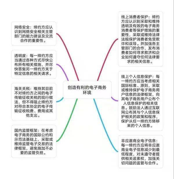 争端解决:发生分歧时缔约方应当首先善意地进行磋商,尽最大努力达成共同满意的解决方案,未能解决分歧时可提交至RCEP联合委员会,不得就电子商务下产生的任何事项诉诸非电子商务法律层面的争端解决。