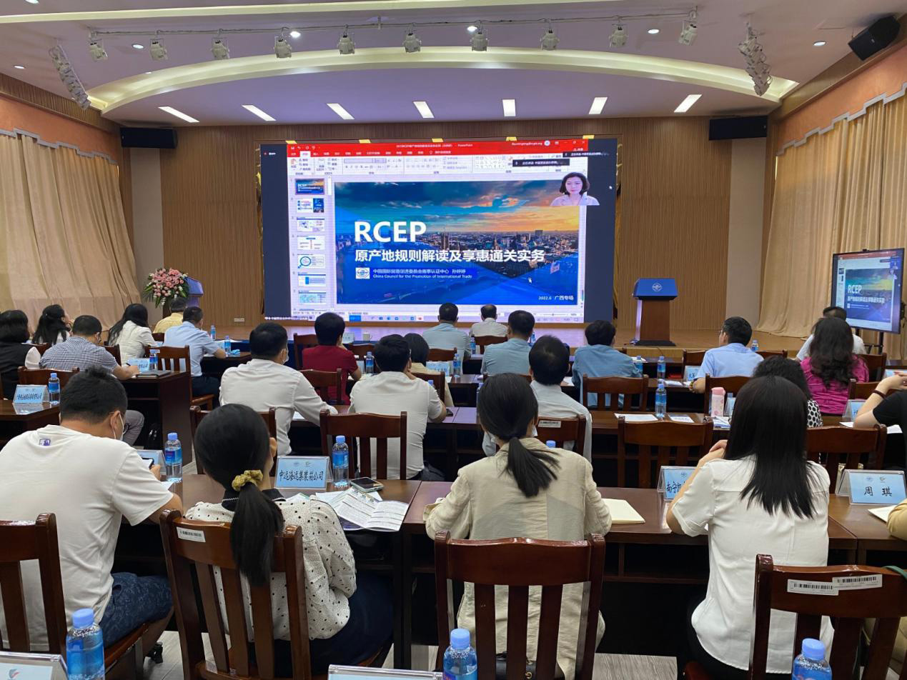 特邀专家围绕RCEP原产地规则认证及实务操作、RCEP主要成员国贸易风险防范等重点内容进行授课,进一步助力全区贸促系统和外贸企业提升掌握和运用RCEP优惠政策的水平。