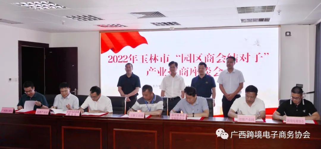 广西跨境电子商务协会与玉林中医药健康产业园管理委员会达成战略合作协议是广西工业振兴特派员驻玉林市工作队的工作成果之一。今年以来,广西工业振兴特派员驻玉林市工作队围绕做好“三员”服务“四重”的工作定位全力推进“园区商会结对子”等十大专项行动,助力玉林市工业振兴和高质量发展。工作队在前期主动拜访全国知名行业协会和发达省市广西商会,并邀请各商协会代表到玉林市实地调研考察后,联合玉林市工业和信息化局、玉林市投资促进局举办了此次活动。广西跨境电子商务协会与玉林中医药健康产业园管理委员会的进一步合作,为园区与商协会建立了更加紧密的联系,搭建了更大范围、更高水平、更深层次、更加务实的交流合作平台。