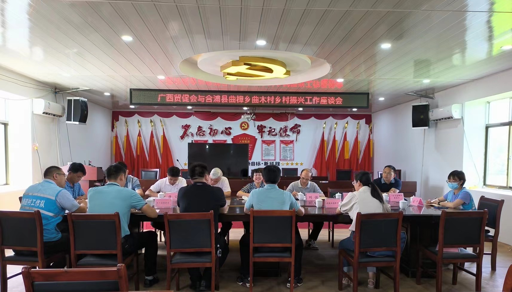 伍娟副会长一行与合浦县、曲樟乡、曲木村各级领导干部在曲木村村委党群活动室召开乡村振兴工作座谈会。座谈会上,曲樟乡党委书记李建龙、驻村第一书记赵正、合浦县乡村振兴和水库移民局副局长肖明瑞分别就曲樟乡、曲木村、合浦县的基本情况、产业发展、乡村振兴工作进展及今后发展方向进行了详细介绍。
