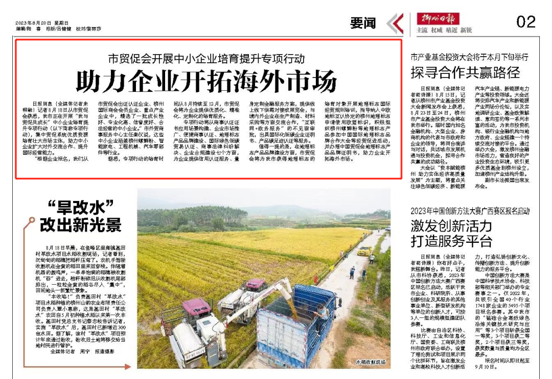 《柳州日报》(2023年8月20日 第02版)报纸截图。