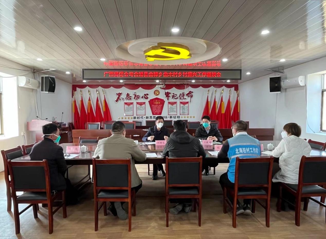 广西贸促会人事部、合浦县曲樟乡人民政府及曲木村相关负责人参加座谈和考察。
