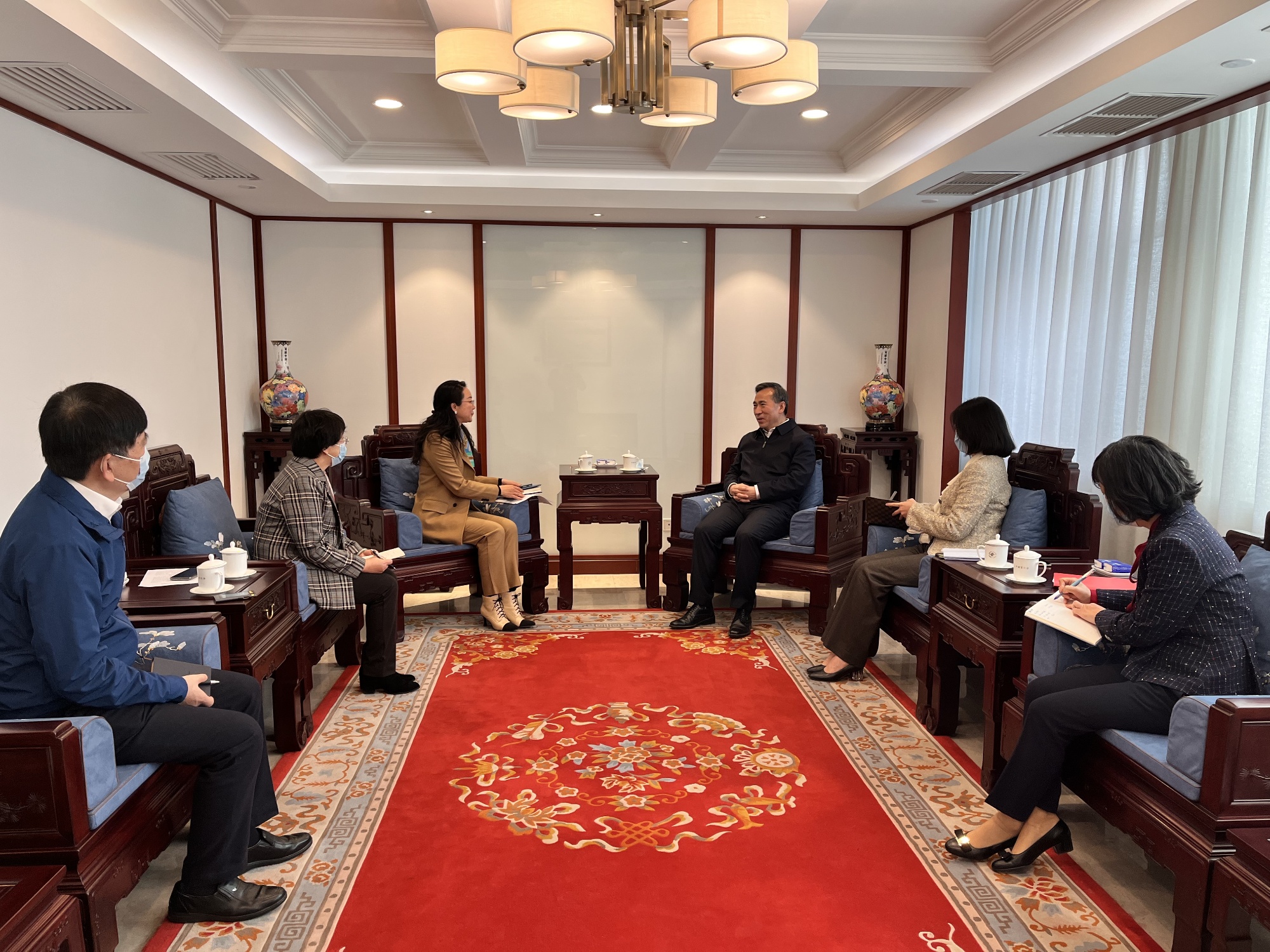 伍娟副会长、丁元龙一级巡视员,办公室、国际联络部、国际会议部、合作发展部、贸易投资促进部、法律事务部等相关人员陪同拜访。