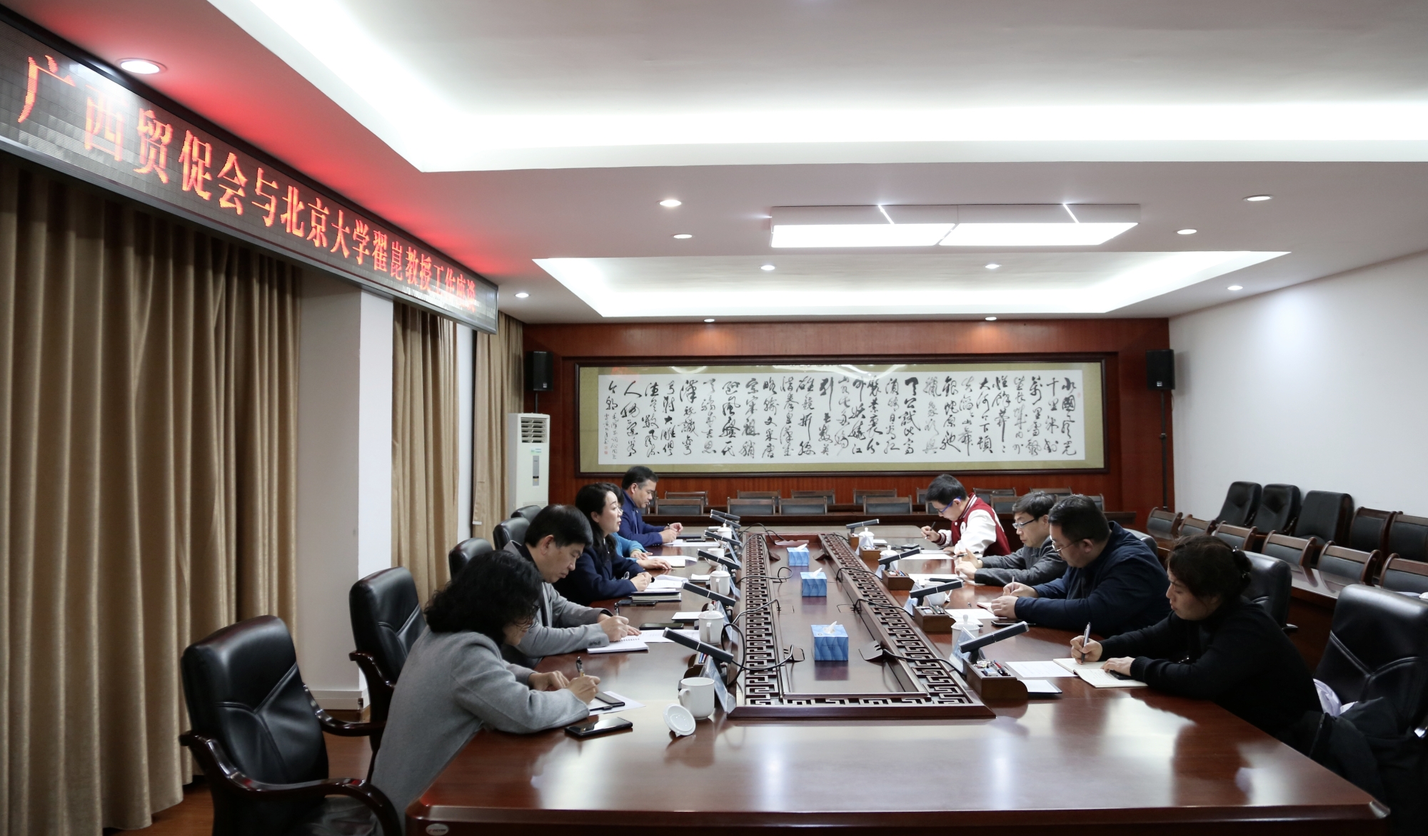 2月7日,广西贸促会党组书记、会长杨雁雁会见北京大学翟崑教授并举行工作座谈。