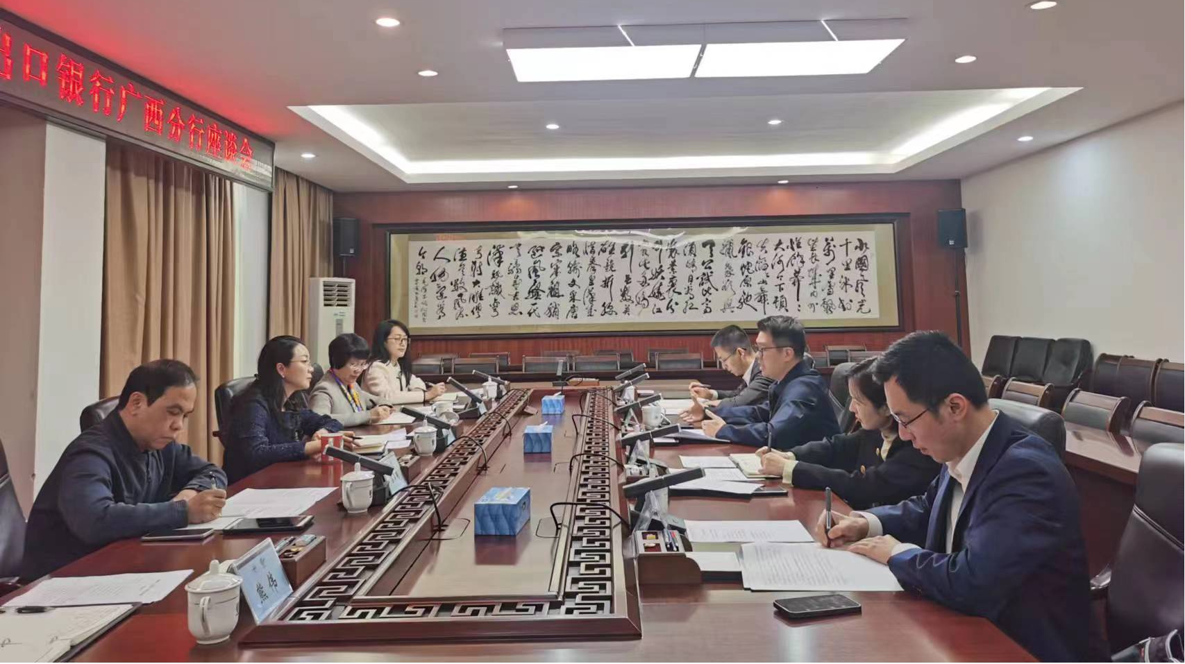 我会副会长伍娟,进出口银行广西分行行长助理刘琳,及双方相关业务负责人参加座谈。
