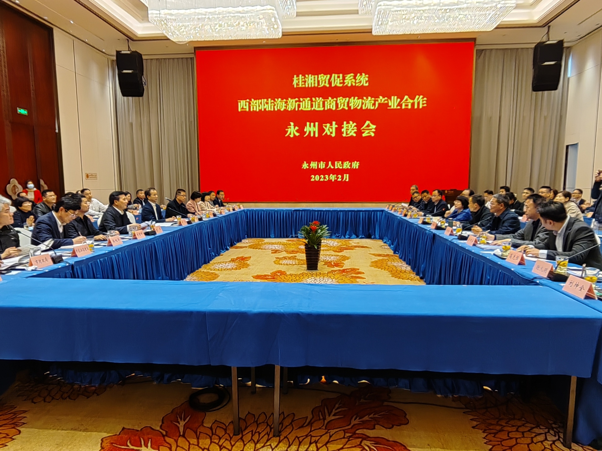 图2:与永州市政府举办桂湘贸促系统西部陆海新通道商贸物流产业对接会