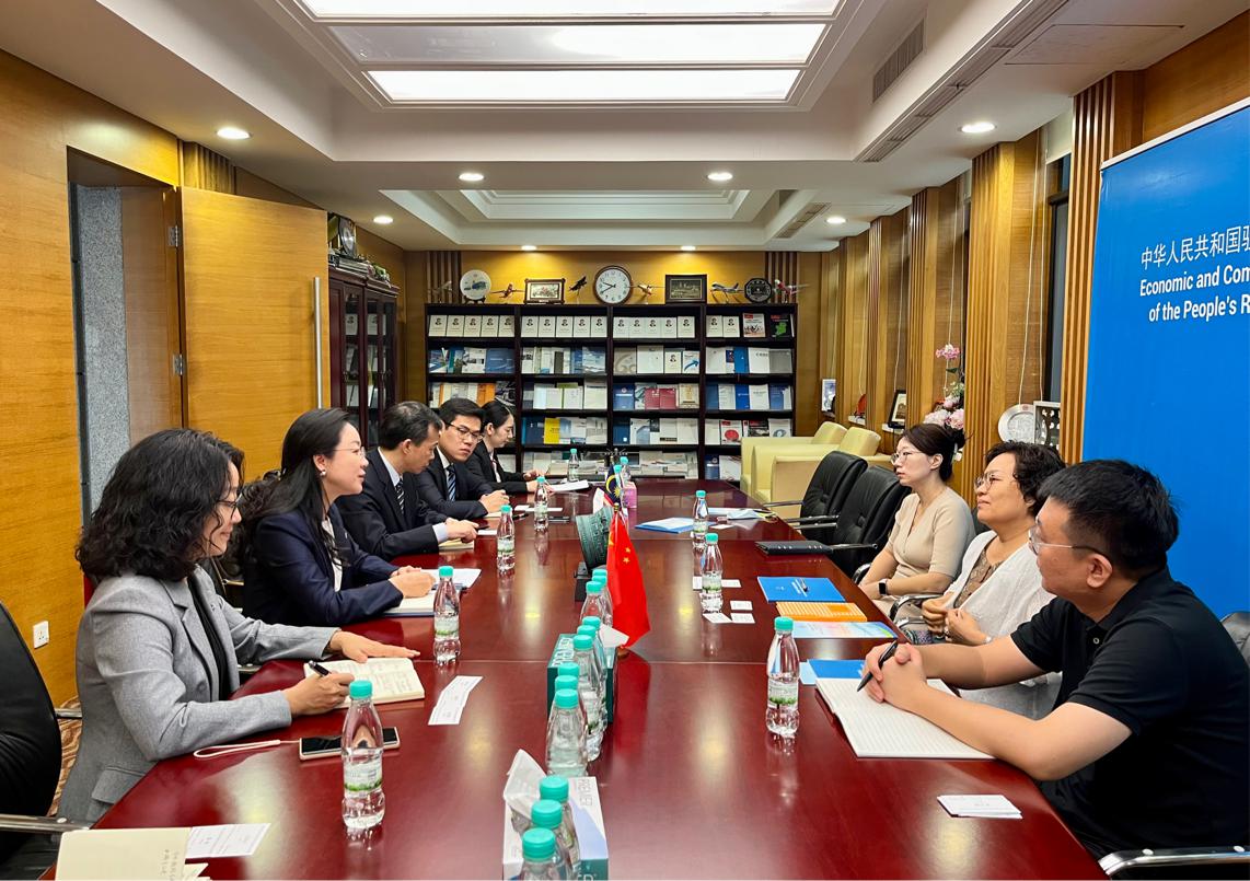 使馆经商处姚祎一等秘书、段文韬二等秘书,我会邓梦彪二级巡视员,国际会议部、国际联络部有关人员会见时在座。