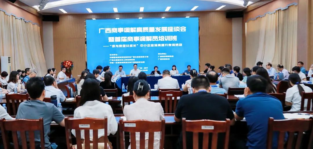 8月26日至27日,由广西贸促会、自治区工商联、中国—东盟自贸区南宁国际商事法庭主办,广西商事调解协会、广西仲裁协会承办的广西商事调解高质量发展座谈会暨首届商事调解员培训班在南宁举办。