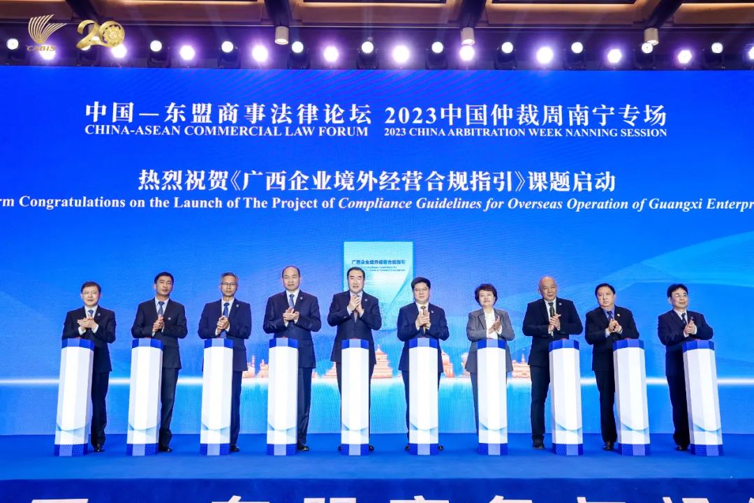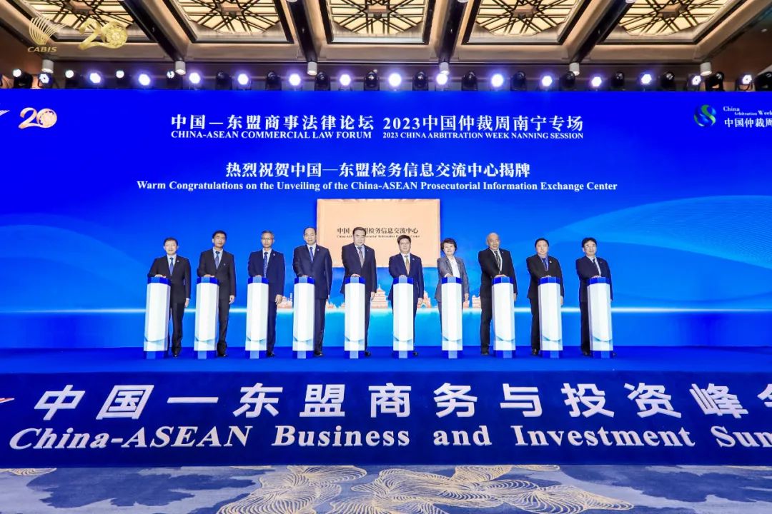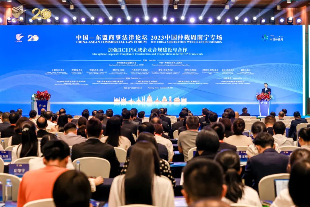 2023年9月18日,第20届中国—东盟商务与投资峰会首次升级举办中国—东盟商事法律论坛(以下简称论坛),并作为2023中国仲裁周南宁专场活动。本届论坛由中国贸促会、广西壮族自治区人民政府、东盟10国国家工商会共同主办,中国贸促会法律事务部、中国—东盟商务与投资峰会秘书处、广西壮族自治区人民检察院、广西壮族自治区工商业联合会承办,中国国际经济贸易仲裁委员会支持举办。广西壮族自治区党委常委、政法委书记何文浩,中国国际贸易促进委员会副会长张少刚,最高人民检察院副检察长葛晓燕,全国工商联副主席邱小平,印尼总检察院副总检察长费里·维比索诺,老挝最高人民检察院副检察长坎皮·宋瓦拉吉,缅甸工商会联合会副主席温锡督,越南最高人民检察院副检察长阮维讲出席并致辞,广西壮族自治区高级人民法院院长黄海龙出席论坛,广西壮族自治区人民检察院检察长茅仲华主持论坛。来自中国和东盟国家的工商界和检察机关代表、法律专家以及各界代表约200人参会。