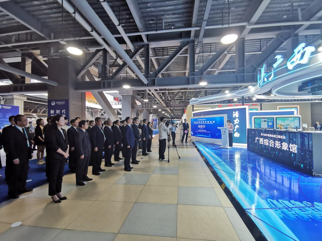 广西历来重视组织参加进博会,已连续五年组织交易团参展参会。本次进博会广西组织了14个设区市交易分团,29个区直单位,1513家企业到会观展,参展企业创历史新高。搭建了180平方米的广西综合形象馆,设置绿色生态、开放互联、智慧制造、桂品出海四大主题板块,全面展示广西开放发展成就,彰显“广西制造链接世界”理念。首次在进博会期间上线中国—东盟汇聚中心“云展馆”,展出千余款中国及RCEP国家产品,为全球参展客商提供线上下单购买服务。当天,广西综合形象馆举行了开馆仪式,自治区副主席眭国华出席仪式并致辞。