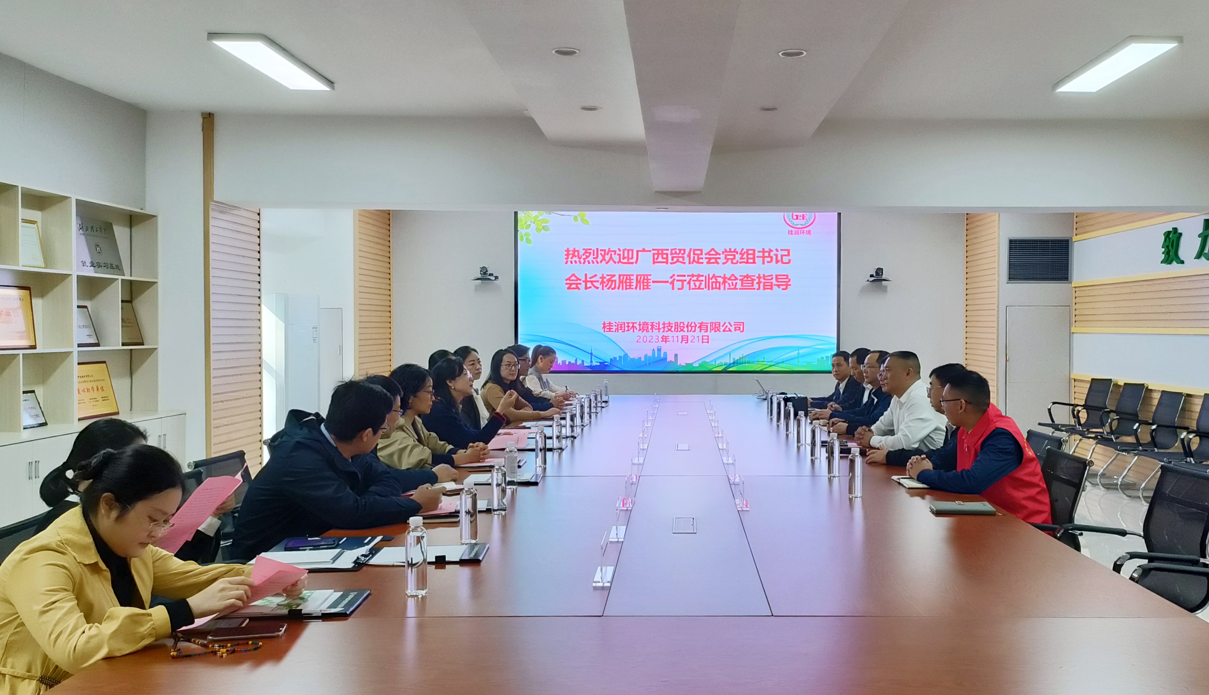 11月21日,为进一步推动《广西贸促会服务企业十一条措施》落实见效,更加精准服务会员企业,帮助企业拓展合作、找准市场,广西贸促会、广西国际商会会长杨雁雁率队到桂润环境科技股份有限公司实地调研,桂润环境董事长魏江州等陪同调研。