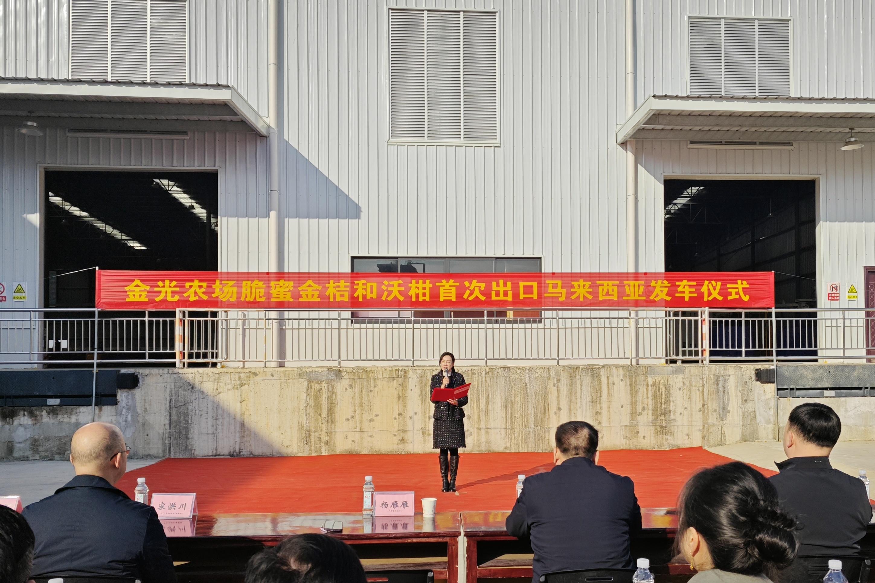 12月25日上午,广西农垦集团于南宁举行金光农场脆蜜金桔、沃柑首次出口马来西亚发车仪式,广西贸促会党组书记、会长杨雁雁应邀出席并致辞。