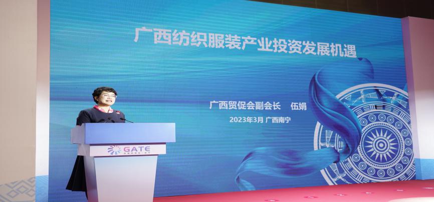 3月17日,由我会与中国—东盟博览会秘书处、中国纺织品进出口商会、中国机械国际合作股份有限公司、广西国际博览集团有限公司等单位联合主办的2023年广西·东盟国际纺织服装产业博览会(以下简称“东盟纺博会”)在南宁国际会展中心盛大开幕。本次博览会以“新高地 新机遇 新未来”为主题,诠释纺织服装产业风貌,探寻合作共赢之路。自治区人大常委会副主任杨静华、中国纺织工业联合会副会长杨兆华出席开幕式并致辞,我会副会长伍娟作广西纺织服装产业招商推介。