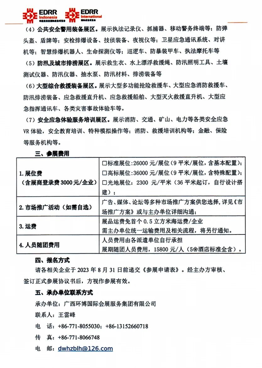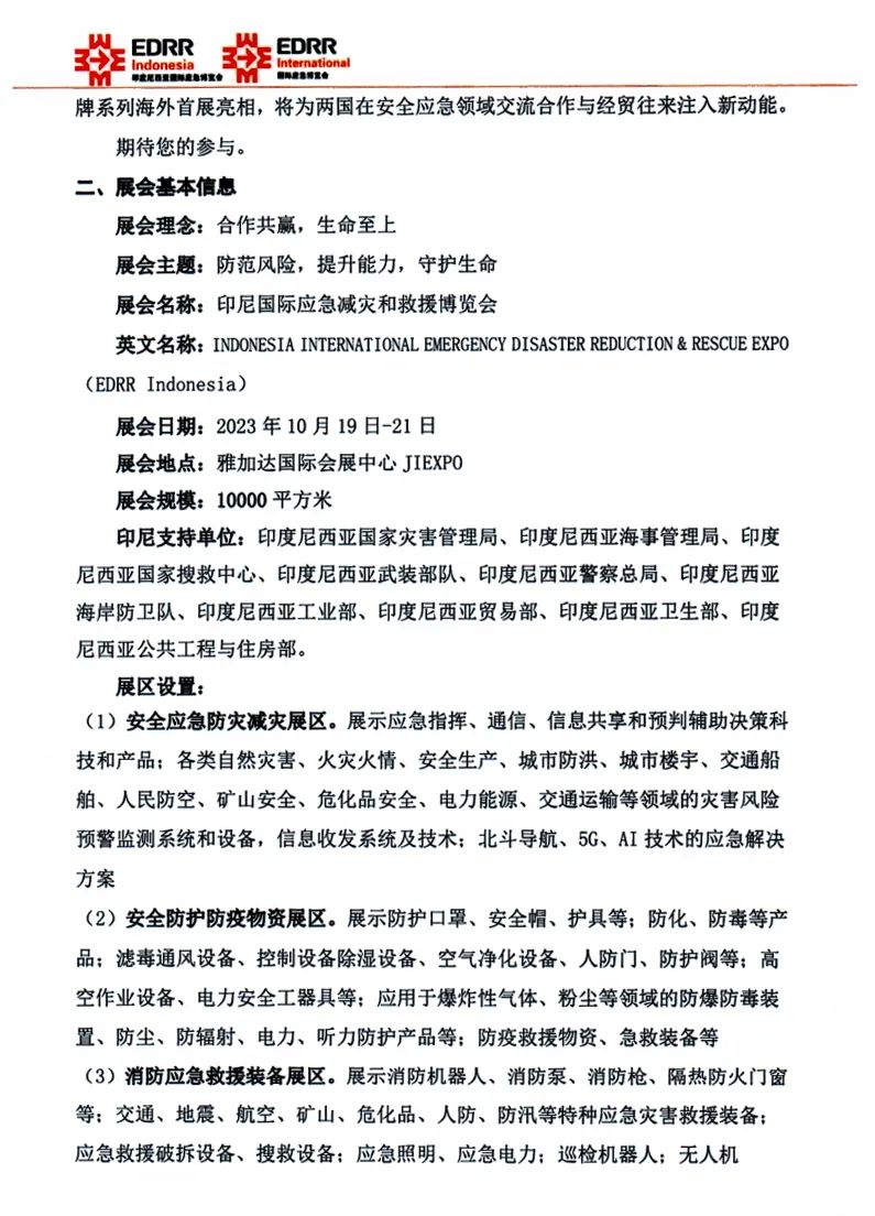 展区内容:安全应急防灾减灾、安全防护防疫物资、消防应急救援装备、公共安全警用装备、防汛及城市排涝、大型综合救援装备、安全应急体验服务培训