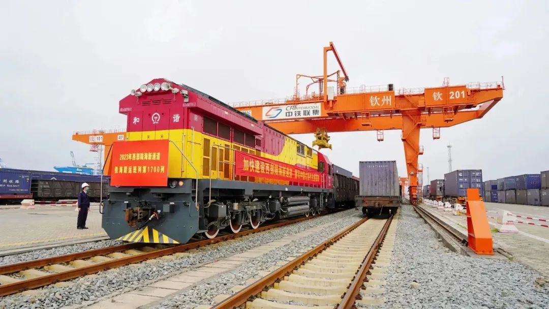 2023年西部陆海新通道海铁联运班列第1700列开行,图源:北部湾港集团。