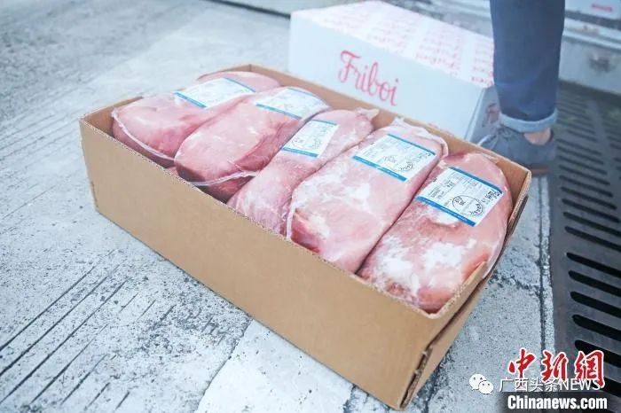 资料图为西部陆海新通道首批原箱进口巴西冻牛肉。重庆国际物流枢纽园区供图
