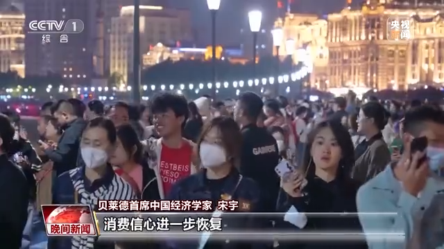 贝莱德首席中国经济学家 宋宇:刚刚过去的“五一”假期,旅游需求得到释放,消费信心进一步恢复,这都促进着经济恢复不断加速。而经济恢复的预期又助推百姓消费信心的恢复,二者目前已经逐渐形成良性循环。