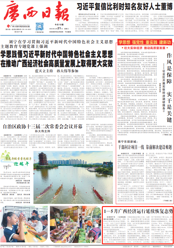 消费市场保持恢复,固定资产投资下降,外贸进出口增势强劲。1—5月,全区限上消费品零售额同比增长2.4%,部分升级类商品零售较快增长,限额以上单位通信器材类、金银珠宝类、书报杂志类商品零售额分别增长12.9%、12.7%和8.9%。全区固定资产投资同比下降15.4%,部分新兴领域投资增长较快。全区外贸进出口总额2875亿元,同比增长53.2%,其中,对东盟进出口增长117.4%,对RCEP其他成员国进出口增长104.4%,对非洲国家进出口增长43.7%。
