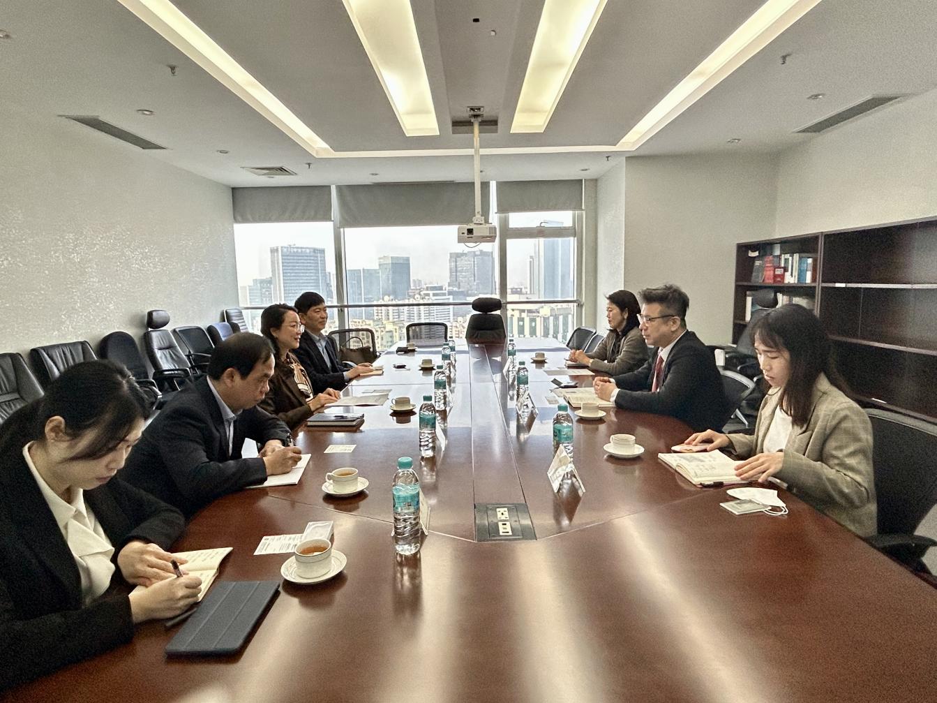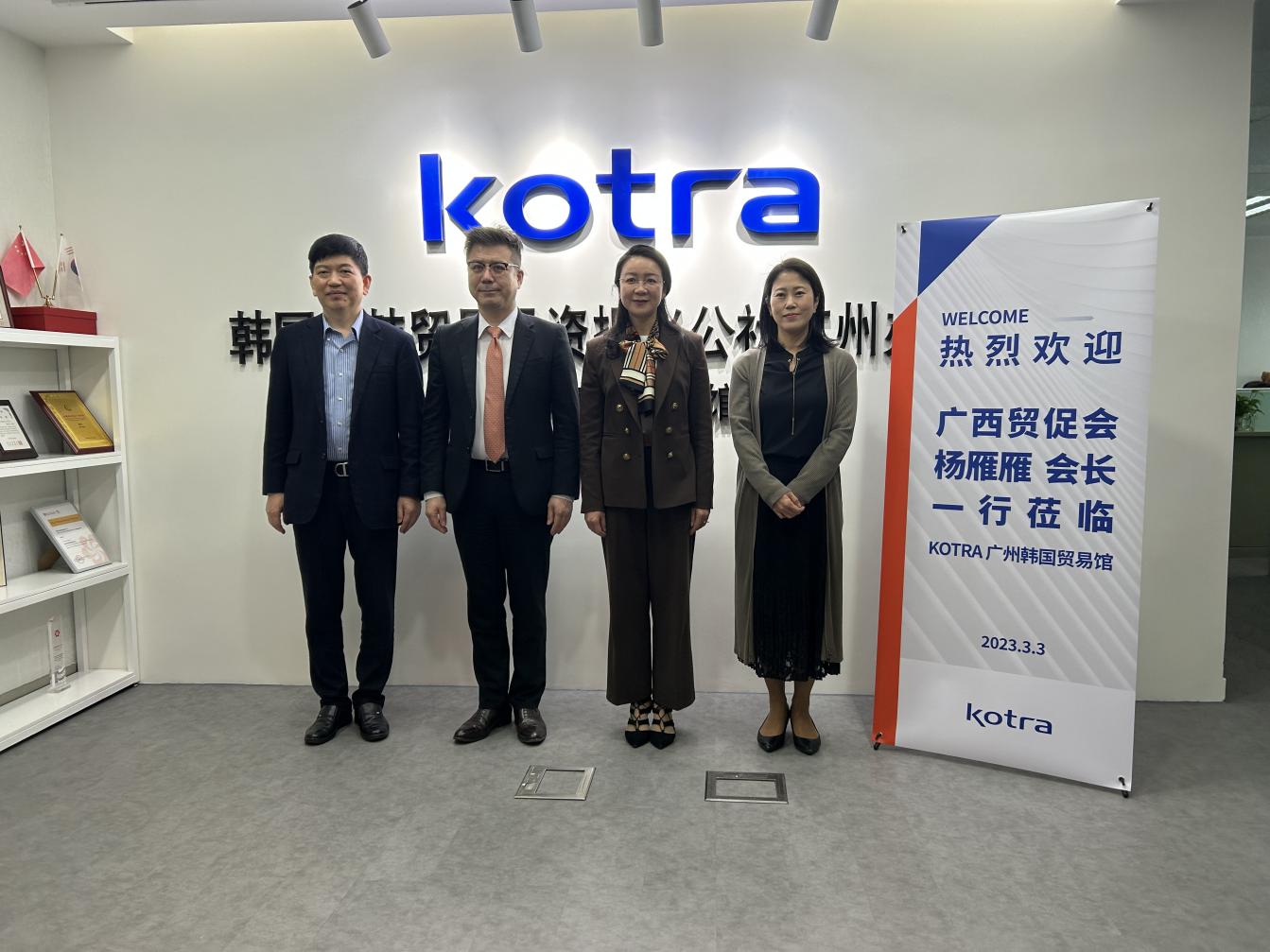 3月3日上午,广西贸促会会长杨雁雁率队拜访韩国大韩贸易投资振兴公社广州办事处(广州韩国贸易馆)(以下简称“KOTRA”),与金柱澈馆长进行了交流。