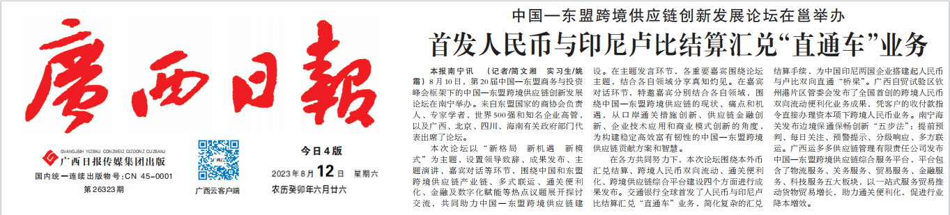 在各方共同努力下,本次论坛围绕本外币汇兑结算、跨境人民币双向流动、通关便利化、跨境供应链综合平台建设四个方面进行成果发布。交通银行全球首发了人民币与印尼卢比结算汇兑“直通车”业务,简化复杂的汇兑结算手续,为中国印尼两国企业搭建起人民币与卢比双向直通“桥梁”。广西自贸试验区钦州港片区管委会发布了全国首创的跨境人民币双向流动便利化业务成果,凭客户的收付款指令直接办理资本项下跨境人民币业务。南宁海关发布边境保通保畅创新“五步法”:提前预判、每日关注、预警提示、分级响应、多方联运。广西运多多供应链管理有限责任公司发布中国—东盟跨境供应链综合服务平台,平台包含了物流服务、关务服务、贸易服务、金融服务、科技服务五大板块,以一站式服务贸易推动货物贸易增长,助力通关便利化,促进行业降本增效。