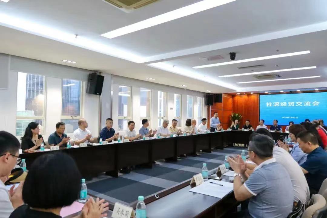 7月31日下午,桂深经贸交流会在深圳国际商会举行。双方代表和企业家代表约40人出席活动。深圳市贸促委领导主持会议并讲话。
